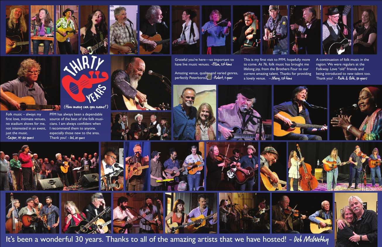 Your support goes directly to supporting the performances by wonderful artists. Your support funds community, connectedness and joy! By supporting Peterborough Folk Music you are participating, and that is huge because as Pete Seeger said, “Participation, that’s what’s gonna save the human race.”